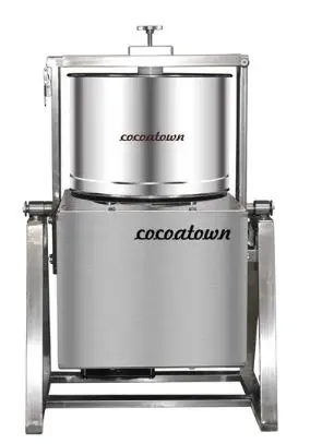 Stone Wheels grind the roasted bean nibs into chocolate. Sugar is added
