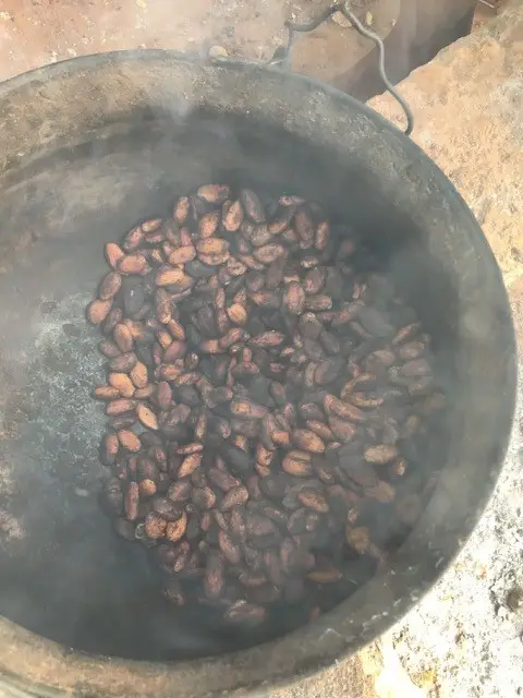 The beans are roasted to reduce the moisture and to bring out the natural cocoa flavor